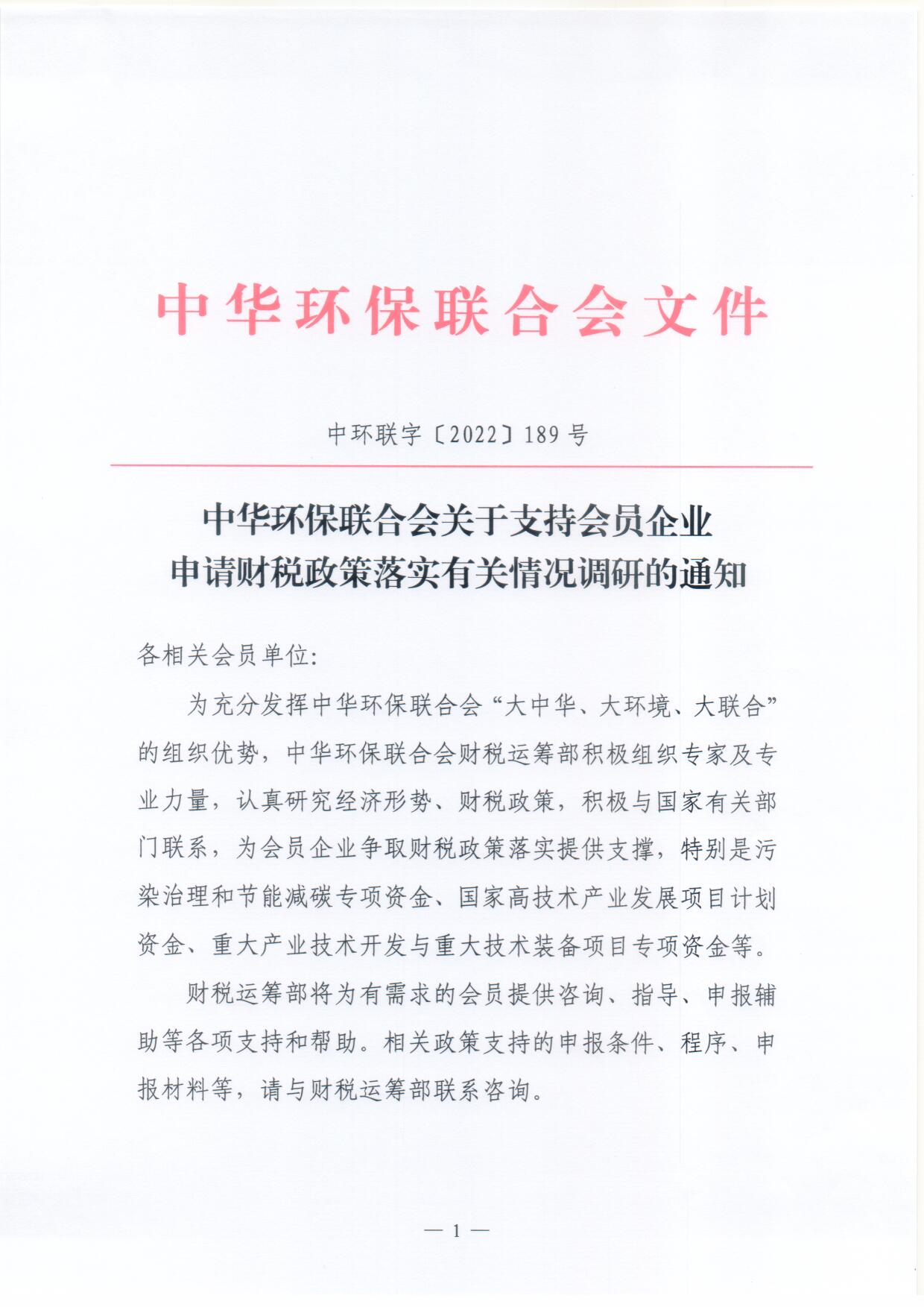 关于支持会员企业申请财税政策落实有关情况调研的通知