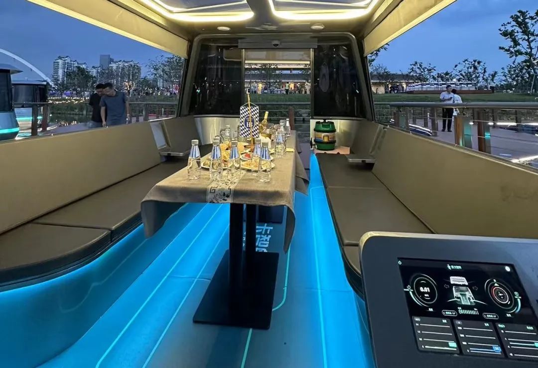 作为江阴首届的运河啤酒音乐节,创新引入欧卡智舶5艘具备水面L4级自动驾驶技术的 “汐” 自动驾驶游船后,衍生并开发出了多种商业场景:水上浪漫夜餐、高级商务接待、沉浸式科技交互水面观光等。