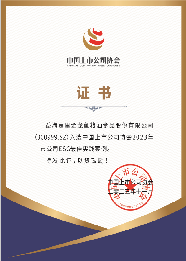 近日,时代传媒集团主办的2023第八届时代金融金桔奖榜单揭晓,益海嘉里金龙鱼荣获2023年度ESG时代先锋上市公司奖、高质量发展上市公司奖。益海嘉里金龙鱼通过技术创新和管理创新,将ESG理念贯穿在生产、建设和经营的全过程,不断提升可持续发展能力。同时,益海嘉里金龙鱼持续深耕农业深加工和粮油领域,积极提高区域农业产业化水平、促进地方经济发展,并大力推进央厨产业园项目,为推动中国粮油行业发展做贡献。