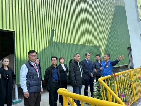 陈溪福董事长对孙晓华主席一行亲临公司进行考察指导表示热烈欢迎。他表示新港热能作为多联产能源综合利用运营商,致力于热能供应、VOCs治理运营、集中空气供应、工业区热网服务等核心业务的能源多元化利用,公司使命是“倡导ESG永续发展、促进节能减排、资源综合利用、开发循环经济”。同时,他详细了介绍了集团公司的发展历程、项目运行模式、主营业务和未来愿景等,包括已投资建设的漳州工厂、厦门工厂、昆山工厂的经营情况,以及目前正在规划建设的天津工厂、越南工厂等国内外项目的进展情况。