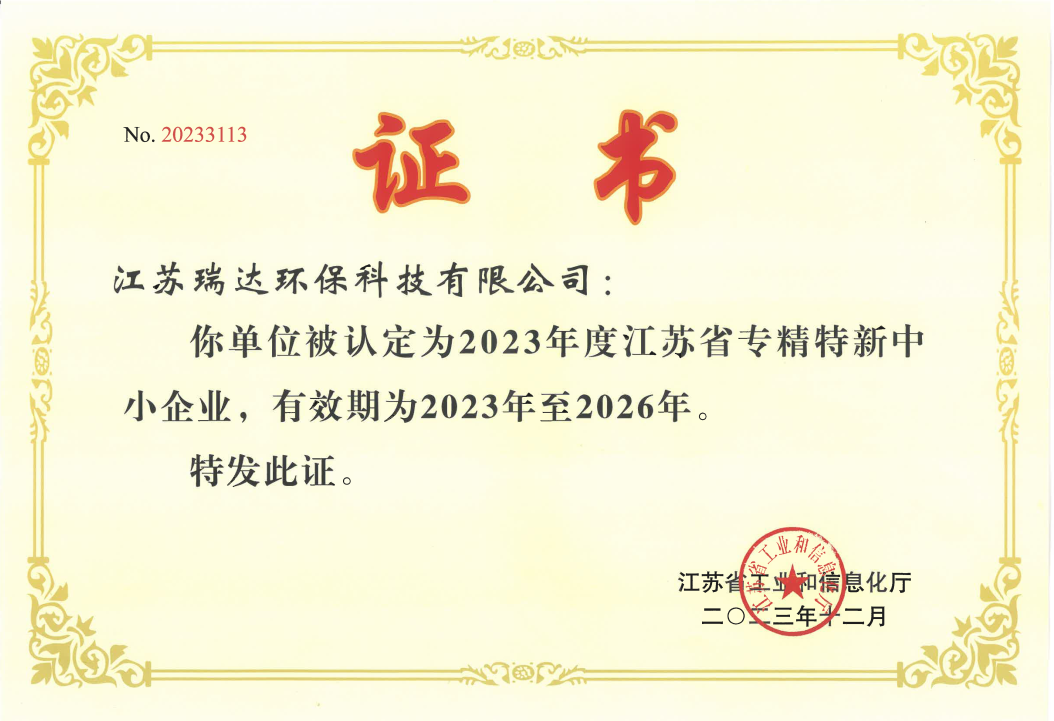 日前,江苏省工信厅发布了《省工业和信息化厅关于公布2023年江苏省专精特新中小企业名单和复核通过企业名单的通知》,瑞达科技成功被认定为2023年度江苏省专精特新中小企业。