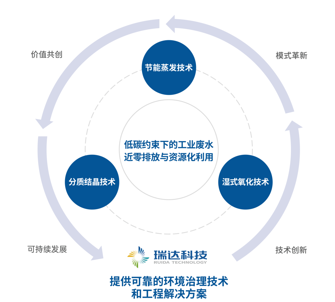 深耕环保行业十余年,瑞达科技始终将技术创新作为企业的核心任务,不断加大技术研发投入,持续引进高精人才组建技术团队,并与国内多所双一流高校建立战略合作关系,构建产学研协作新模式,有效推进科技成果转化,成功突破多项关键核心技术,现已取得授权专利50余项,先后开发和应用了低碳约束下的节能蒸发技术、以资源化利用为目的的分质结晶技术和用于废水脱毒和无害化的湿式氧化技术,并以这三项核心技术的配套工艺和辅助技术构建起瑞达科技开展低碳约束下工业废水近零排放与资源化利用的主营业务。