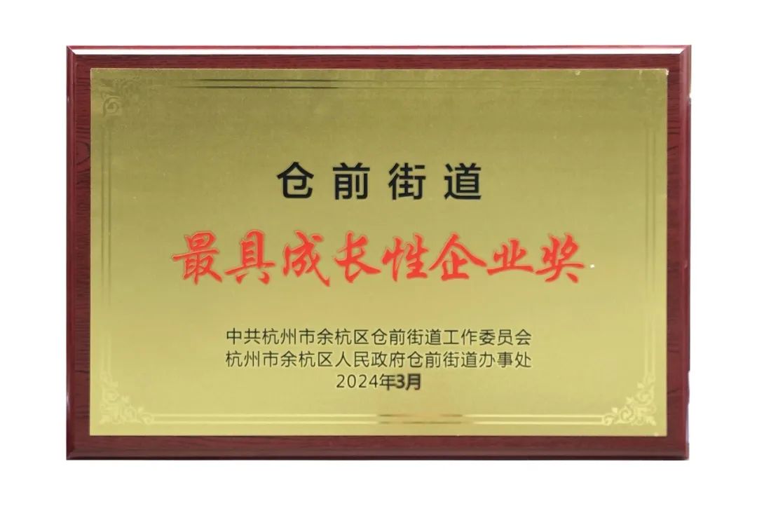 仓前街道最具成长性企业”的荣誉为契机,将继续奋勇争先,立志成为行业的领军企业,为仓前经济高质量发展贡献更多力量!