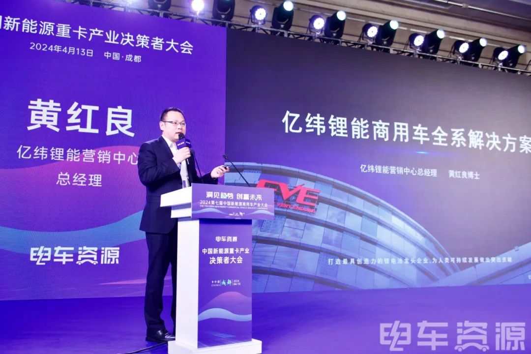 会上,黄红良博士发表了《亿纬锂能商用车全系解决方案》的主题演讲,他表示,亿纬锂能始终立足于新能源商用车多样化的用车需求,并结合市场趋势和特点,持续为市场提供“重量更轻,电量更多,成本更优”的电池产品。