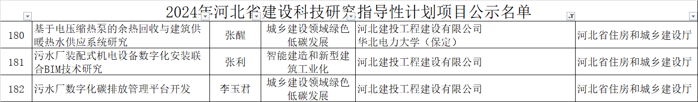 近日,由省住房和城乡建设厅组织评审的2024年建设科技研究指导性计划项目公示,公司申报的《基于电压缩热泵的余热回收与建筑供暖热水供应系统研究》、《污水厂装配式机电设备数字化安装联合BIM技术研究》和《污水厂数字化碳排放管理平台开发》3项科技项目成功入选。