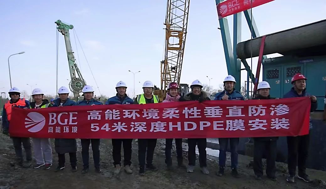 高能环境六里屯填埋场风险防控项目创造了柔性垂直防渗54米的全球最大膜体安装深度的纪录