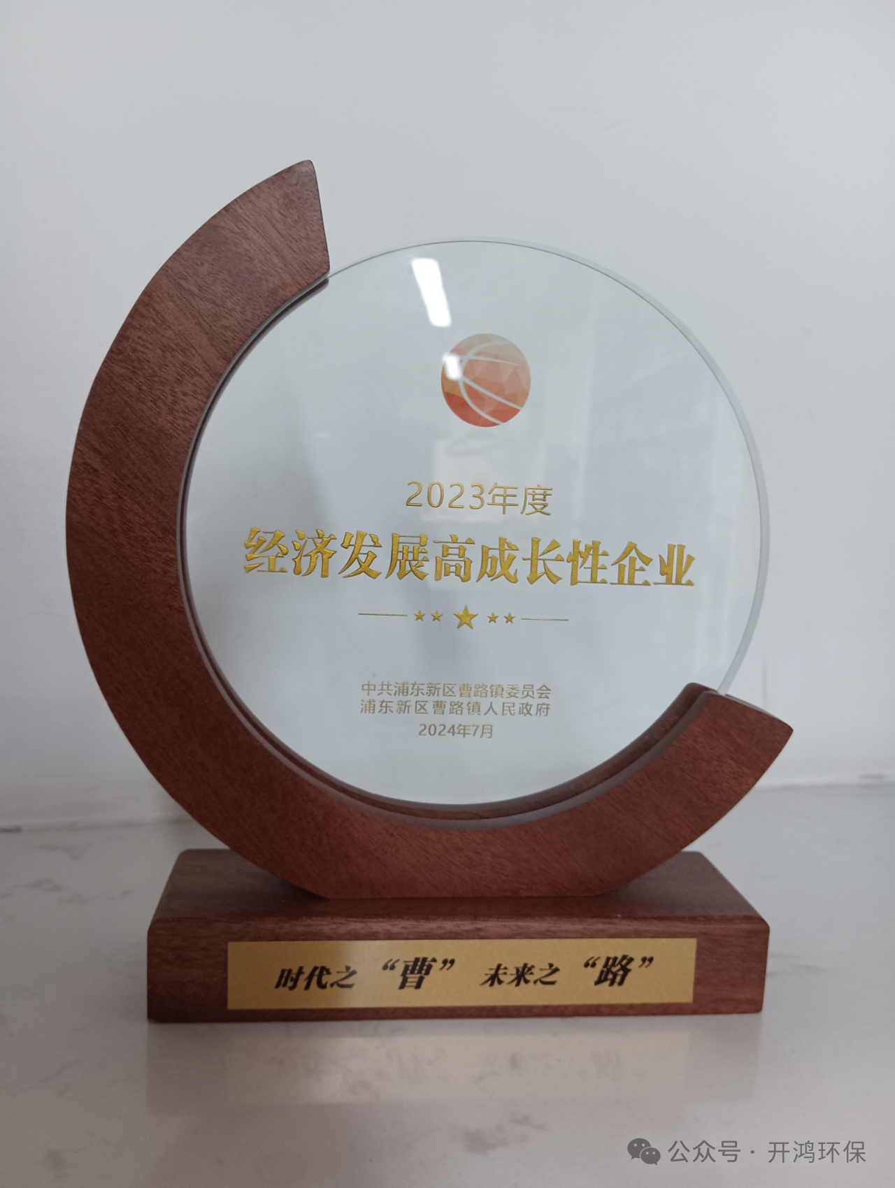 上海市浦东新区曹路镇政府举办“优化营商环境暨重点企业表彰大会”,上海开鸿环保科技有限公司荣获“2023年度经济发展高成长性企业”。这一荣誉是对我们公司过去一年在环保领域的卓越表现和贡献的认可。