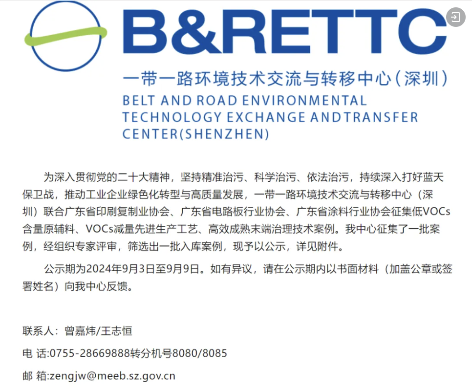近日,广东凯凌生态环境科技有限公司的有机废气吸收工艺顺利完成了在“一带一路”环境技术交流与转移中心(深圳)VOCs(挥发性有机化合物)治理应用示范库的入库。