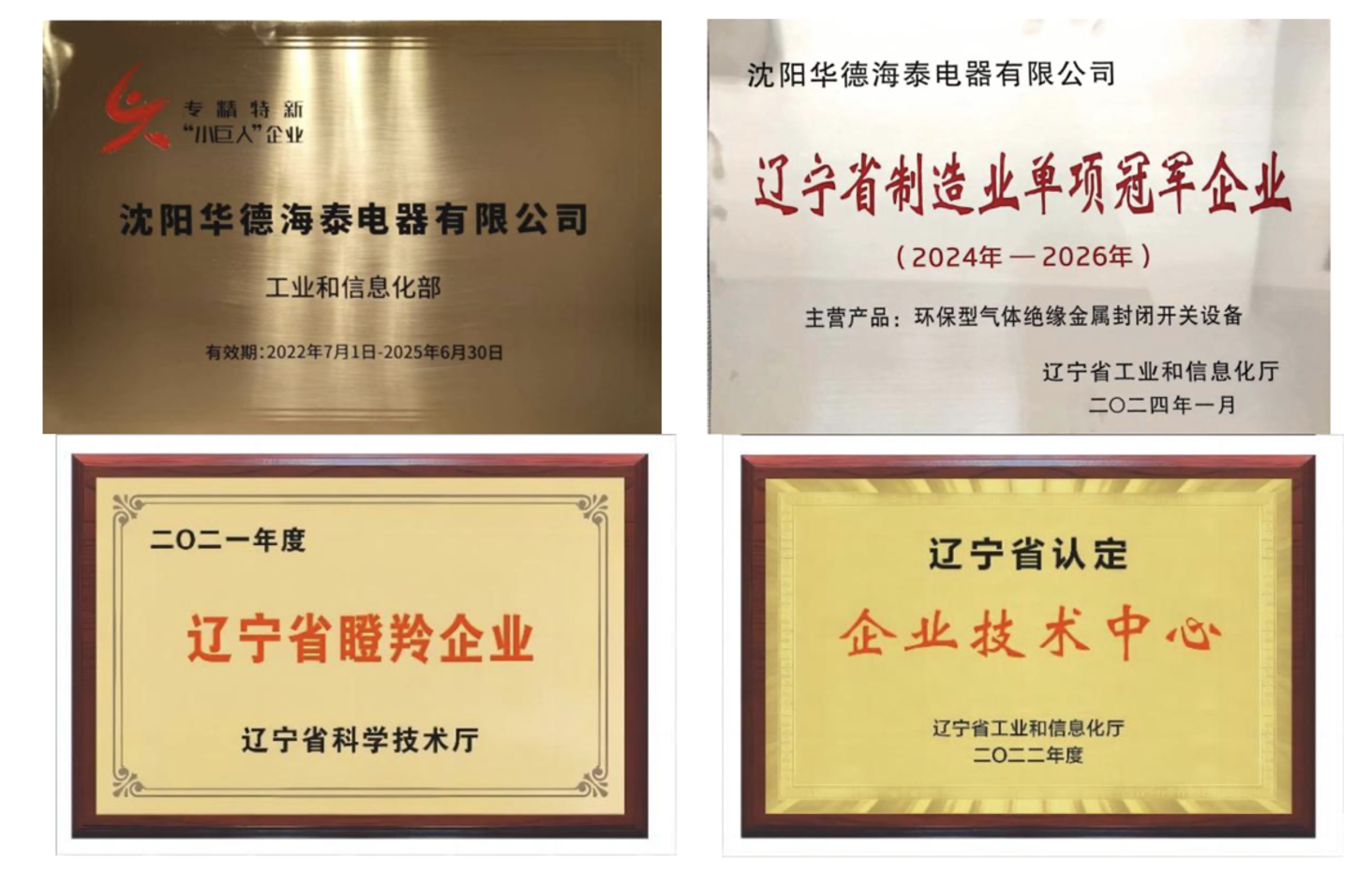沈阳华德海泰电器有限公司是专业致力于环保型(SF6替代技术)电力开关设备的高新技术企业,位于沈阳经济技术开发区,注册资金16500万元。公司是国家级专精特新“小巨人”企业、辽宁省“瞪羚”企业、辽宁省制造业单项冠军企业,拥有辽宁省企业技术中心。