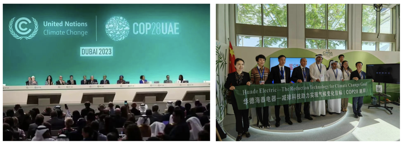 联合国气候第28次大会于2023年11月30日-12月12日在阿联酋迪拜举行。沈阳华德海泰以“气候行动——减排科技助力实现气候变化目标(沈阳华德海泰电器SF6减排技术)”为主题参加在迪拜联合国气候大会的中国角典型减排案例示范活动,这是东北三省也是全行业唯一一家入选的企业,也是对沈阳华德海泰在环保型电力开关设备领域技术创新及工程应用所做贡献的认可。