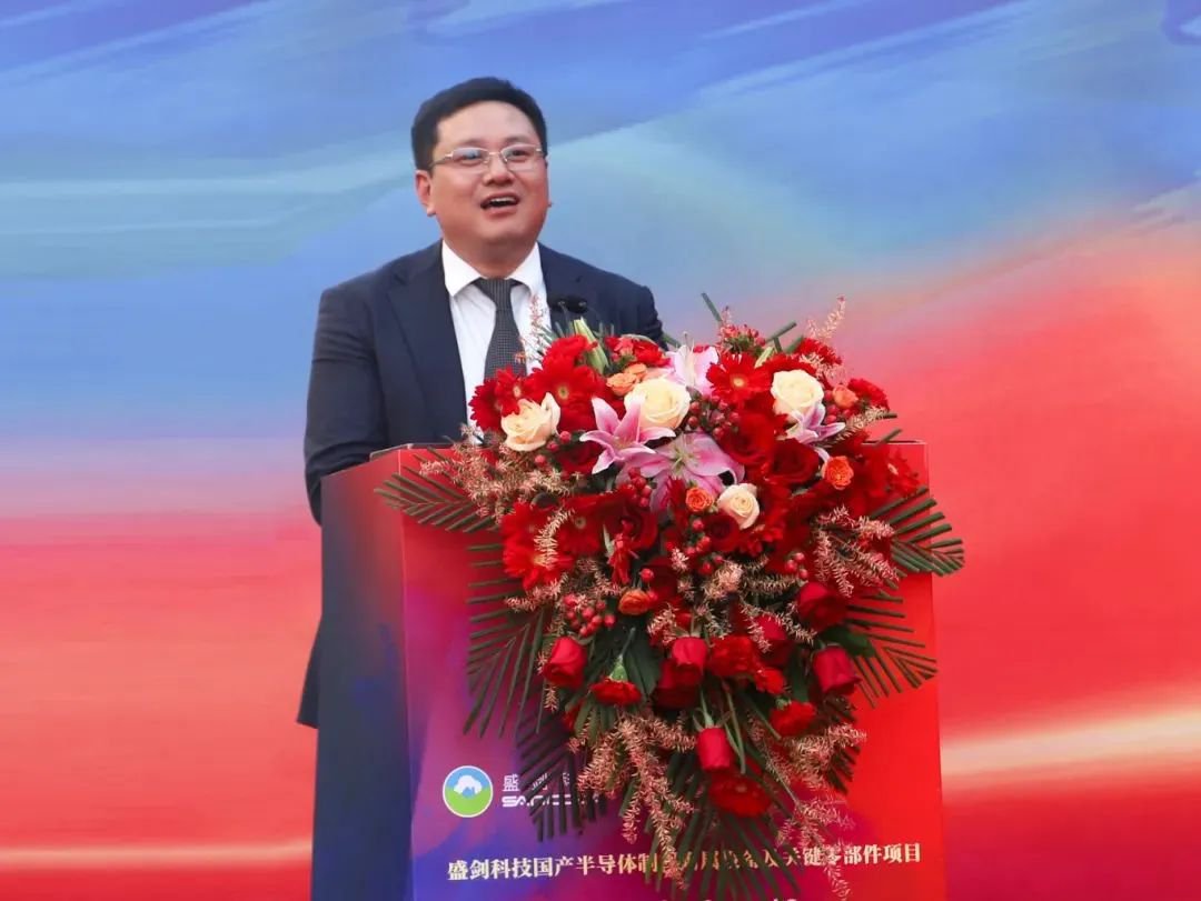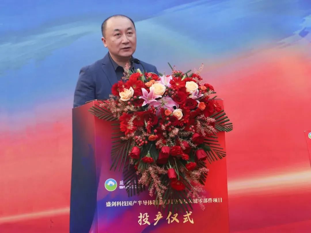 作为重要客户代表,北方华创集团副总裁、华丞电子董事长刘利坚博士登台致辞,对盛剑科技的投产表示祝贺,并期待未来深化合作,共谋产业发展新机遇!