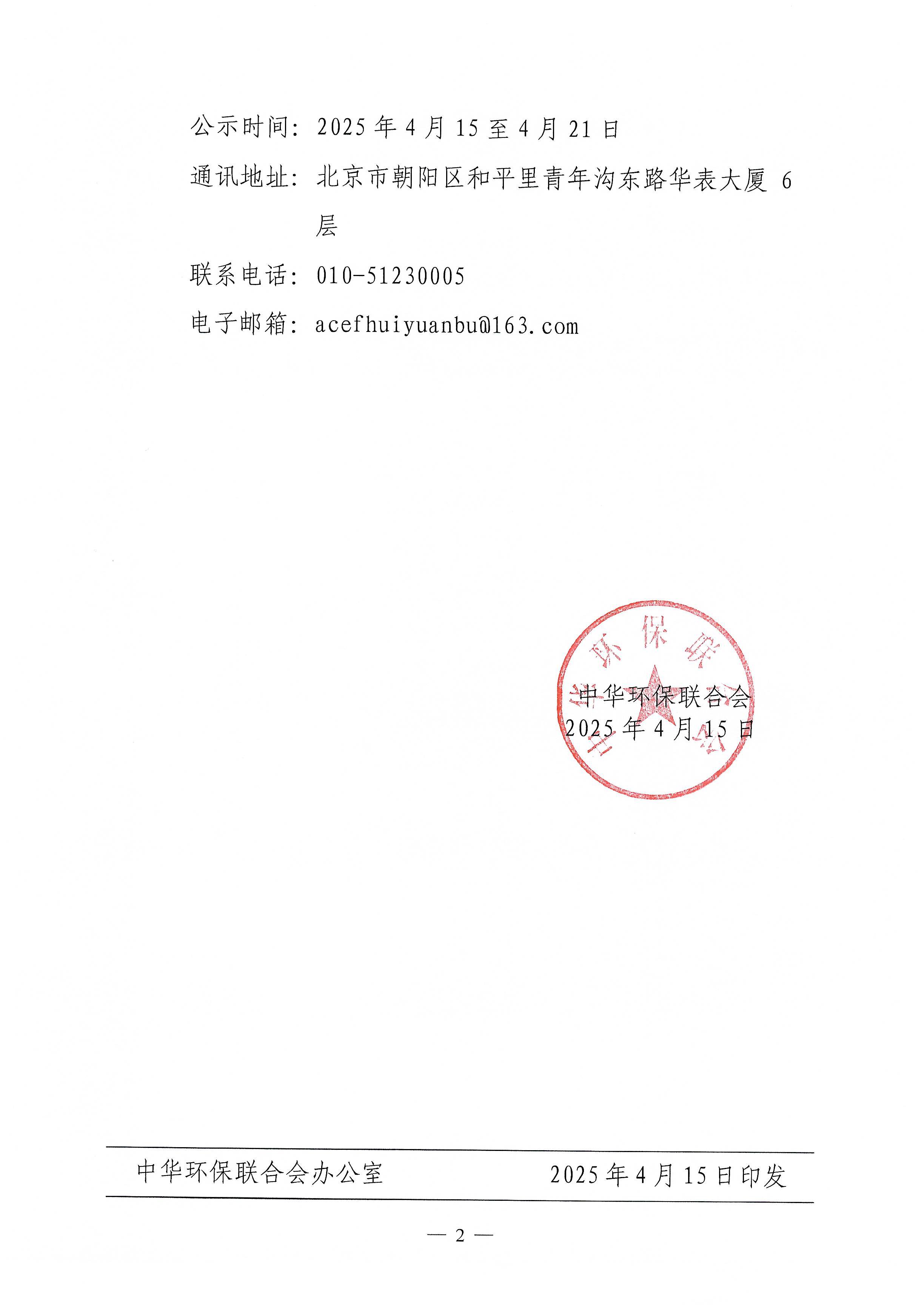关于中华环保联合会第四届理事会届中增补负责人候选人名单的公示