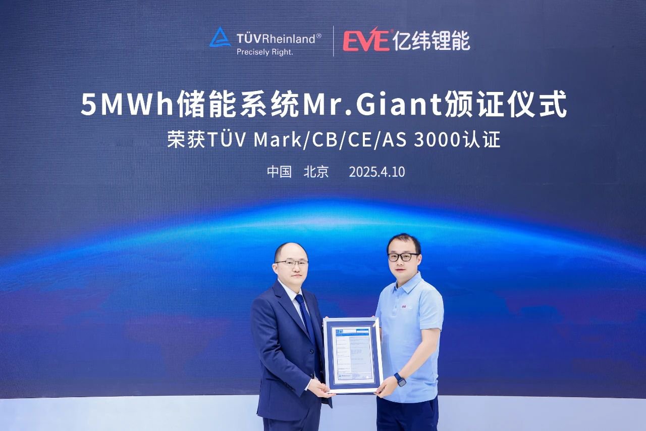 At the scene, EVE Energy's flagship product Mr. Giant also marked a significant milestone by successfully obtaining international certifications including TÜV Mark, CB, CE and AS 3000, thereby acquiring the qualification to acess European and Australian markets.