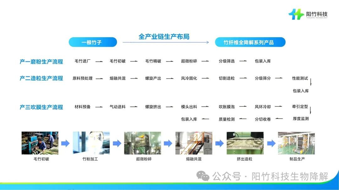 作为国家“以竹代塑”战略示范工程,阳竹科技秉持着“一根竹子,终结全球白色污染”的企业使命,专注于竹纤维生物降解材料与制品的研发、生产和销售,围绕高分子材料合成改性、工程化集成系统和终端制造等关键技术创新,从一根竹到30万吨年产,阳竹科技构建了“竹材-超微磨粉-改性粒子-终端产品”四位一体的智能化生产体系,真正实现“从竹林到终端”的绿色闭环。