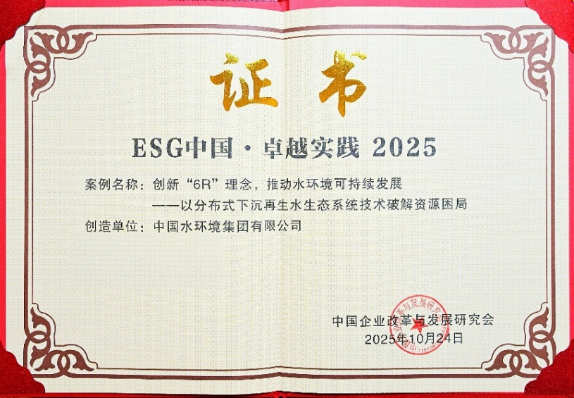 近日,ESG中国·创新年会(2025)暨首届ESG国际博览会在北京首钢园召开。大会正式发布了《2025年度ESG卓越实践报告》,中国水环境集团凭借《创新“6R”理念,推动水环境可持续发展——以分布式下沉再生水生态系统技术破解资源困局》案例从213家申报企业中脱颖而出,与中核集团、中国移动、华润集团、浦发银行、京东、腾讯等36家知名企业入选,为更多中国企业走向可持续发展道路提供了实践样板。