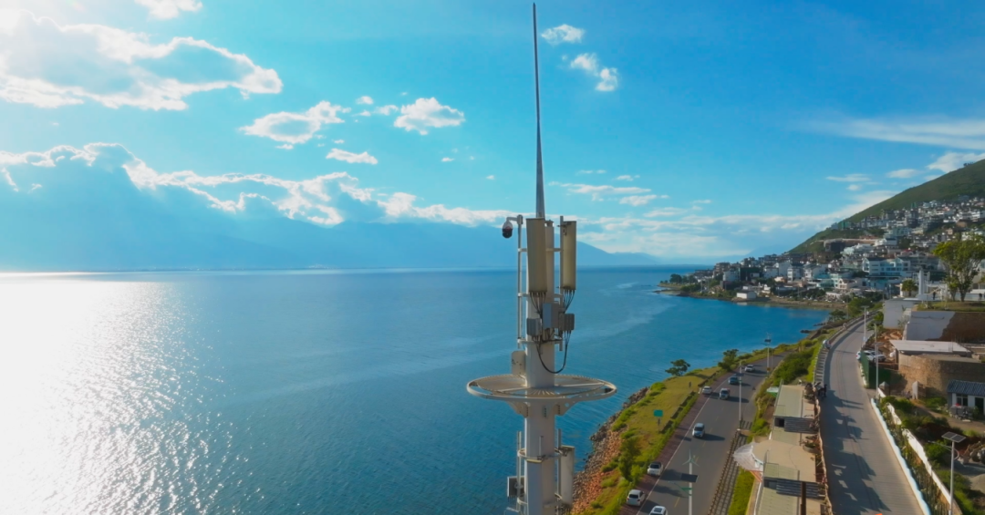 云南大理苍山洱海旁通信铁塔上的湿地智能监管一体化系统监控探头