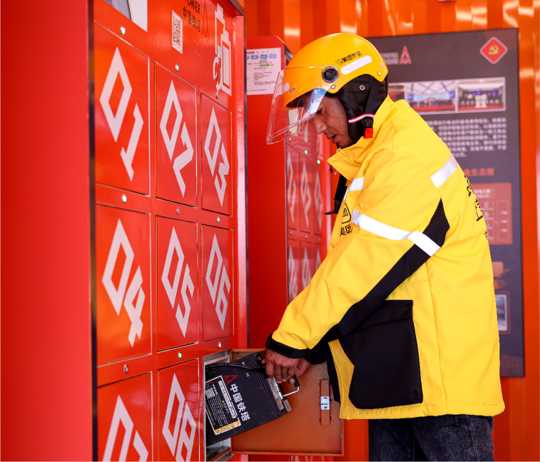 在湖北武汉,一座20米高的通信塔搭载5G天线,塔基配有通信机房,塔旁安装的智能换电柜已成为外卖骑手的“能量补给站”,用户10秒即可完成电池更换。