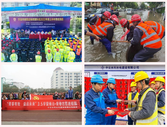 公司积极参与“浙江有礼·宁波示范”文明新实践,通过实施“中交助梦·文明润泽”社会责任实践行动,将“在宁波看见文明中国”的点点星火传播到世界各地。坚持以党建带创建,大力践行社会主义核心价值观,聚焦“塑魂、强基、领航”三大工程,广泛开展“中交蓝·党旗红·中国梦”实践活动,凝聚起企业高质量发展和文明创建互融共促的最大合力。积极履行社会责任,每年出资10万元设立中交水利冠名慈善基金,参与贵州省普安县、四川省金阳县脱贫攻坚对口帮扶,与属地街道社区构建文明结对共建长效机制,常态化开展“蓝马甲”志愿服务,注册志愿者近500名,年均服务时长超7100小时,开展设施援建、助学济困、抢险救灾等公益活动上百次,参与组建的建筑业应急抢险救援队获浙江省“最美建设人”,奏响美美与共的中交水利文明创建和音。