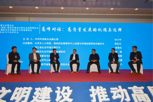 在成果经验交流、高峰对话环节,国务院发展研究中心资源与环境政策研究所副所长常纪文与各地生态环境政府部门负责人、企业负责人等共同探讨了我国高质量发展的机遇与选择。