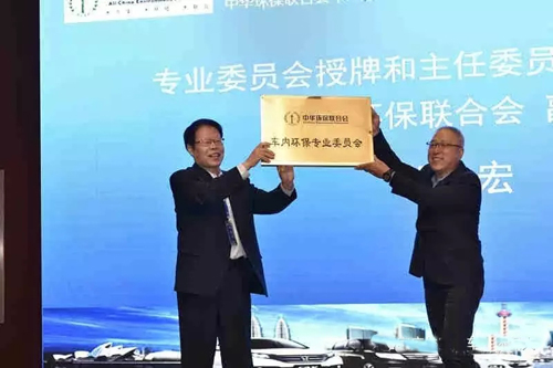 中华环保联合会副主席卫宏向车内环保专业委员会授牌