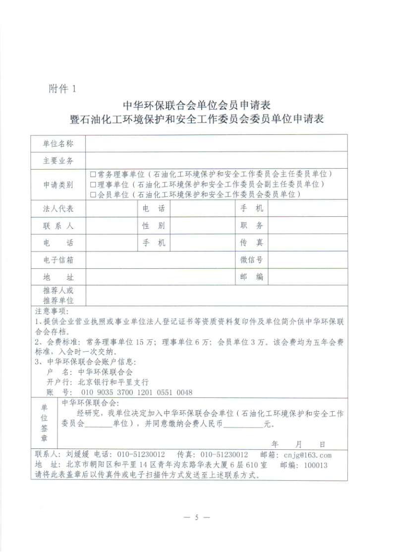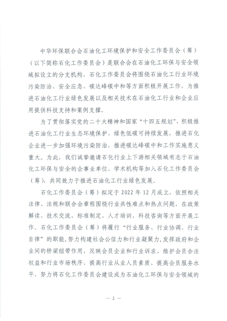 关于邀请加入中华环保联合会石油化工环境保护和安全工作委员会(筹)的函
