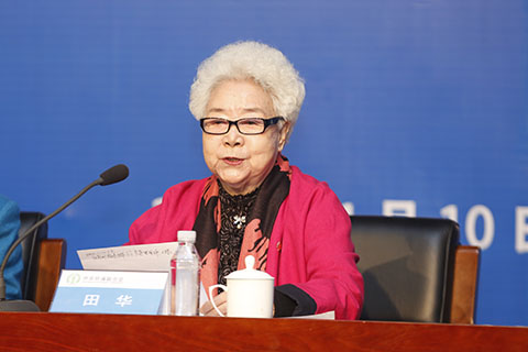 著名表演艺术家、中华环保联合会常务理事田华宣读年会倡议书