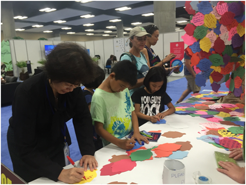 谢玉红副秘书长在“我们需要大自然”的世界涂鸦墙上留下联合会的名字