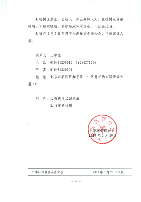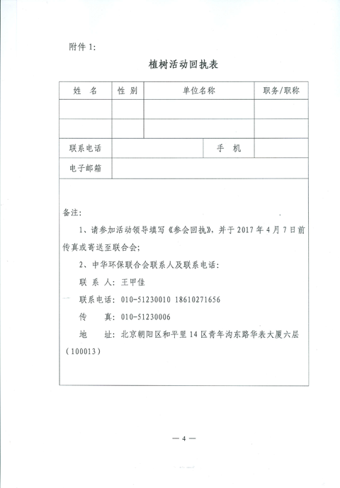 中华环保联合会关于2017年公益植树活动的通知