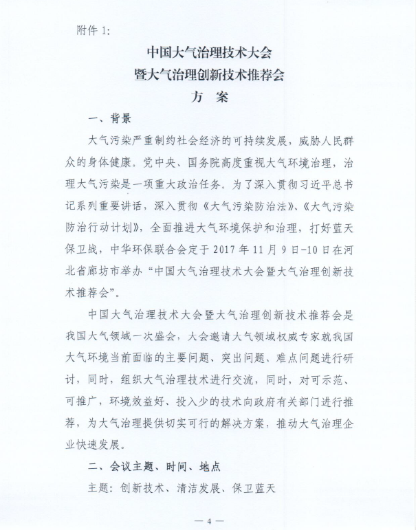 关于举办“中国大气治理技术大会暨大气治理创新技术推荐会”的通知