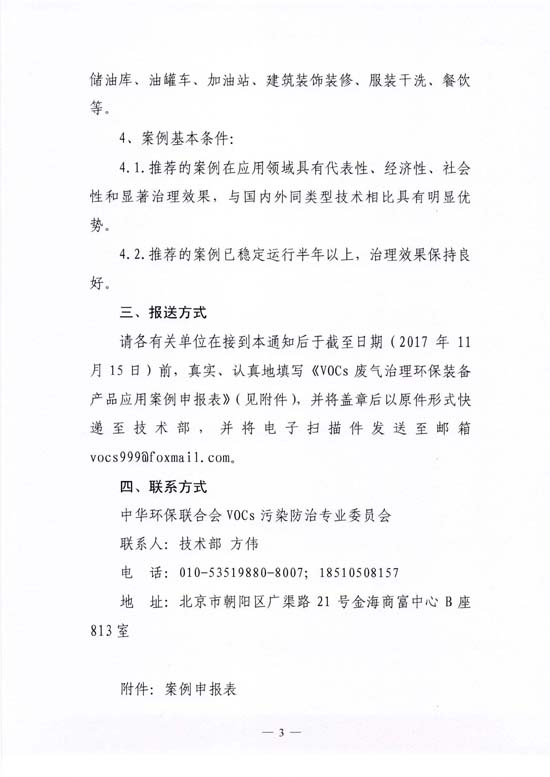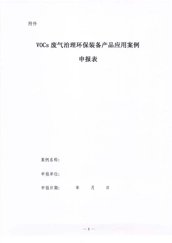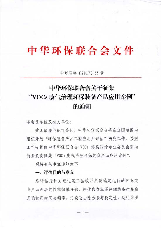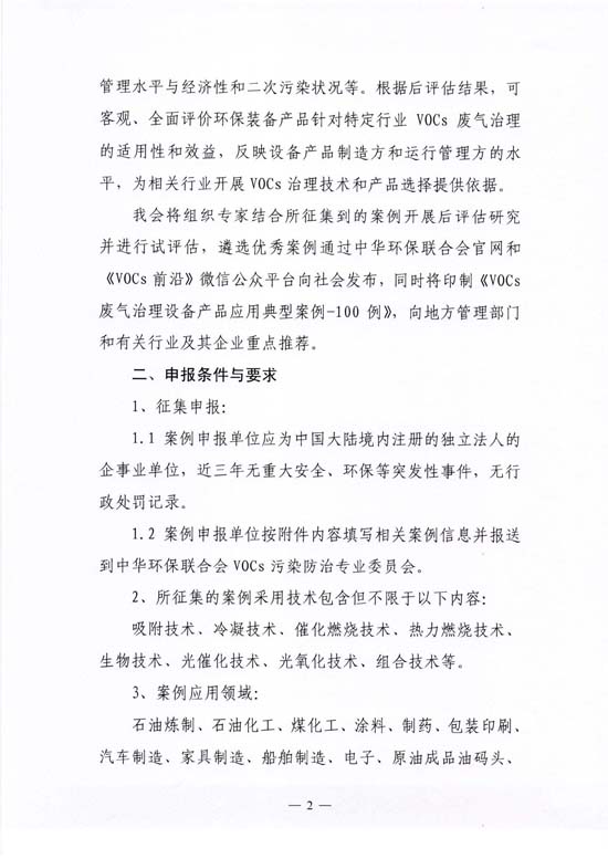 关于征集“VOCs废气治理环保装备产品应用案例”的通知
