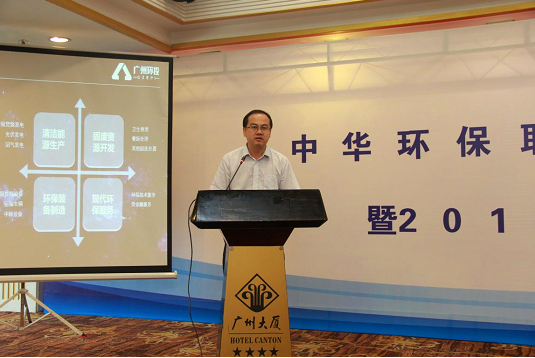 原环保部华南督查中心副主任曾端仪和广州环保投资集团有限公司(以下简称“广环投”)董事长刘先荣分别做会议致辞。