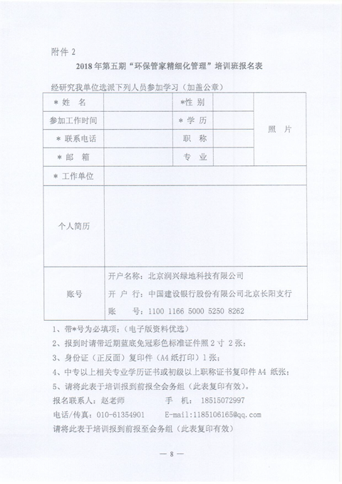 [附件]关于举办第四期、第五期“环保管家精细化管理”培训班报名表