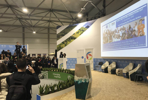 中华环保联合会代表还参与了大会期间中国角、熊猫角、DESA角、新闻发布间以及各类边会、展览区域的活动,期间开展了应对气候变化短片展播、主题发言、提问互动等有关工作(详见下列组图),并积极与各国代表交流互动,发出中国民间组织声音、拓展应对气候变化网络。