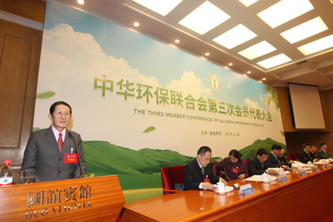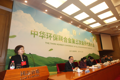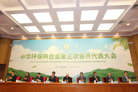 2019年3月26日上午,中华环保联合会第三届会员代表大会在京隆重举行。十一届全国人大常委会副委员长、中华环保联合会名誉主席周铁农,中华环保联合会常务副主席、全国工商联原副主席孙晓华,民政部社会组织管理局副局长(正局级)廖鸿,中央和国家机关工委协会党建工作部副部长谭清德,生态环境部办公厅副巡视员吴怀民,联合国环境署驻华代表涂瑞和,中国民间组织国际交流促进会国际交流处处长朱静芳,世界自然保护联盟IUCN驻华代表朱春全,中华环保联合会秘书长张永红等领导嘉宾及400余位会员代表出席了本次大会。大会由张永红主持。中国环境科学学会等单位发来贺信,对大会的召开表示热烈祝贺。
