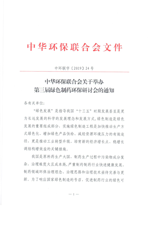 关于举办第三届绿色制药环保研讨会的通知