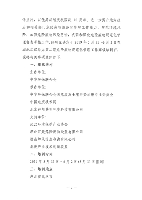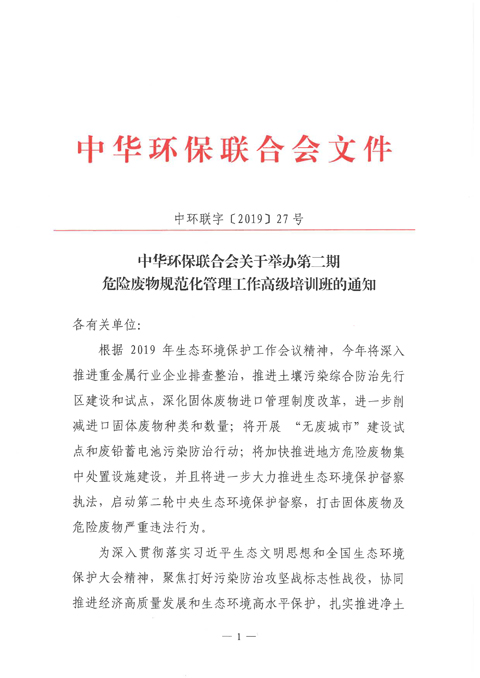 关于举办“第二期危险废物规范化管理工作高级培训班”的通知