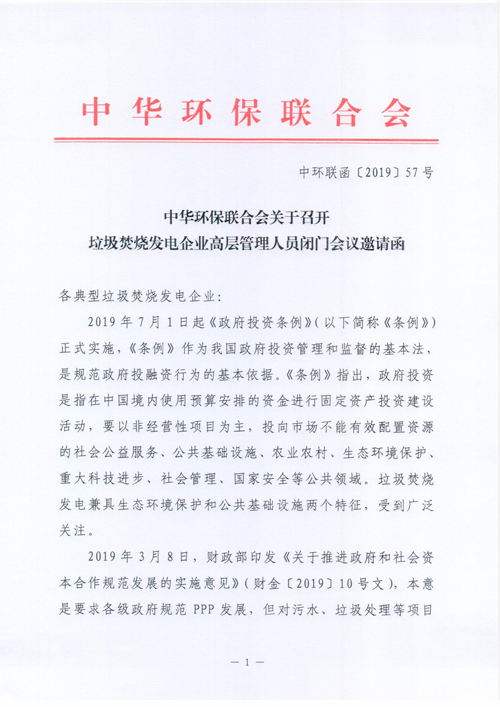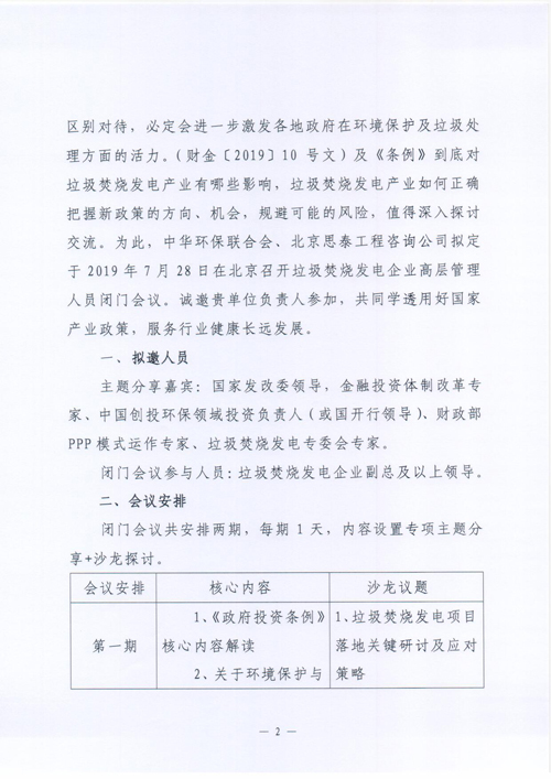 关于召开垃圾焚烧发电企业高层管理人员闭门会议邀请函