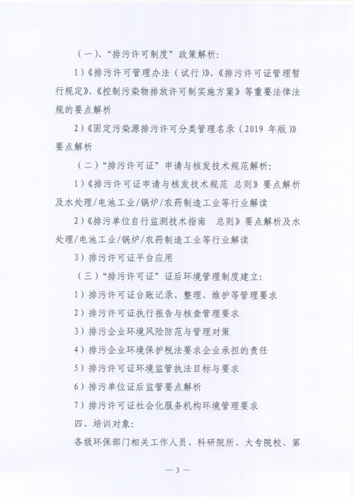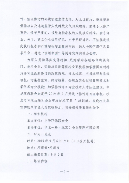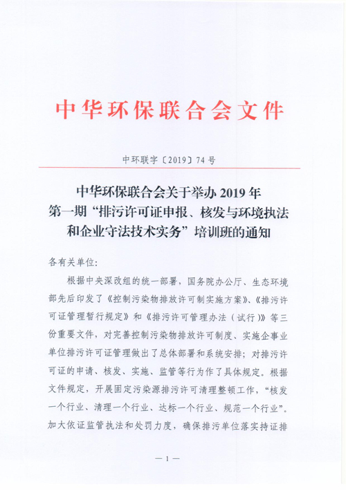 关于举办2019年第一期“排污许可证申报、核发与环境执法”和企业守法技术实务” 培训班的通知