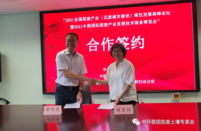 会上举行了合作签约仪式,由中华环保联合会谢玉红副主席兼秘书长和国际贸易促进委员会建筑材料行业分会吴旭东副会长在合作协议上签字,并共同预祝大会圆满成功。