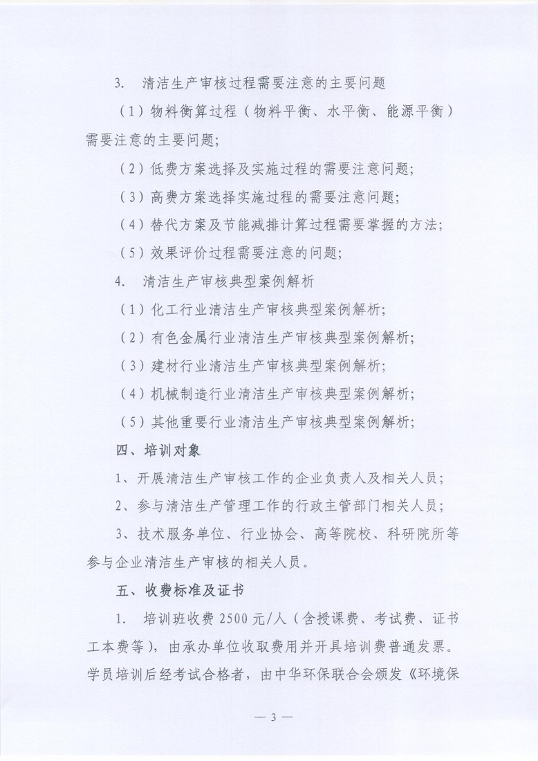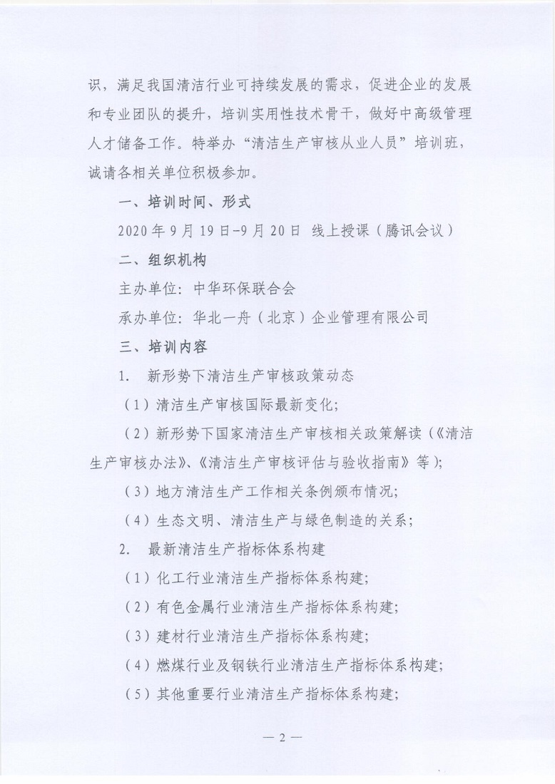 关于举办2020年第一期“清洁生产审核从业人员”培训的通知