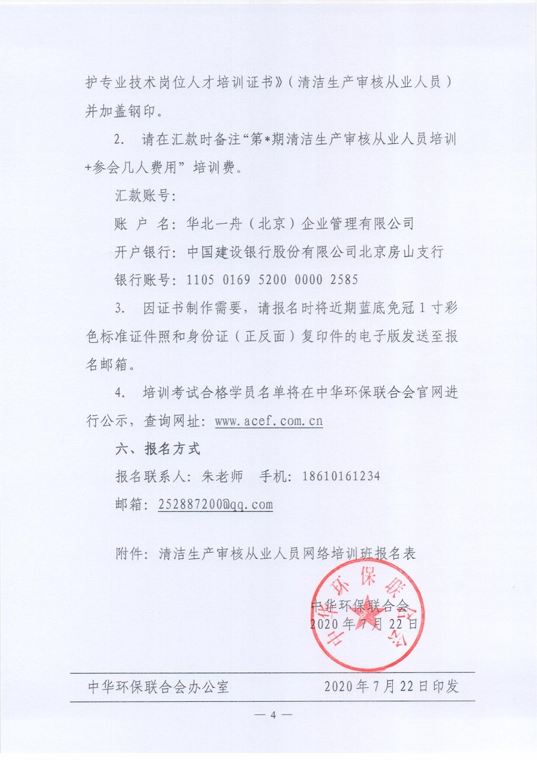 清洁生产审核从业人员网络培训班报名表