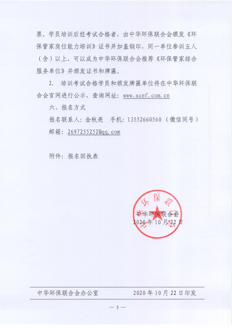中华环保联合会关于举办2020年第六期 “ 环保管家 ” 案例精讲培训班的通知