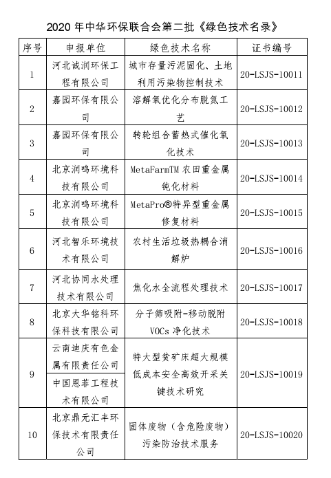 根据申报单位填写的《申报书》及相关文件,我会组织相关专家对申报技术资料进行了评审和考察。经严格评审后,现将第二、三批入选《绿色技术名录》的具体名单公布如下: