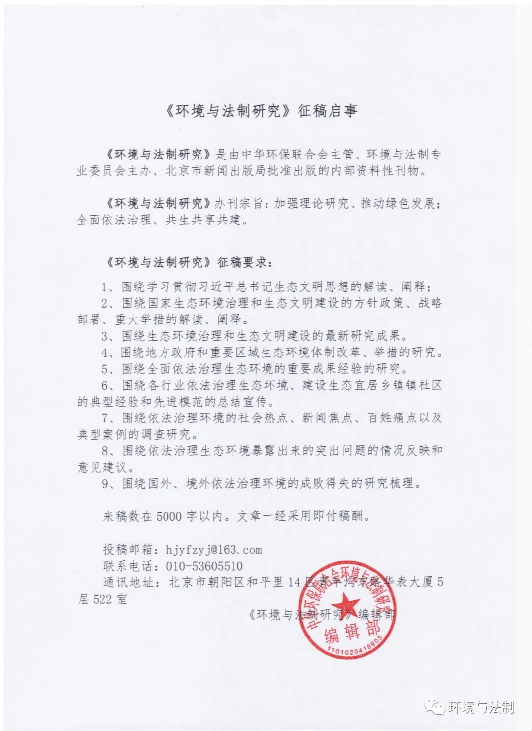 《环境与法制研究》办刊宗旨:加强理论研究、推动绿色发展;全面依法治理、共生共享共建。