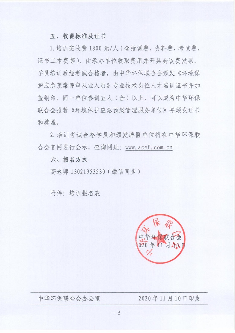 中华环保联合会关于举办2020年第二期第三方“环境保护应急预案评审从业人员”专业技术岗位人才培训班的通知