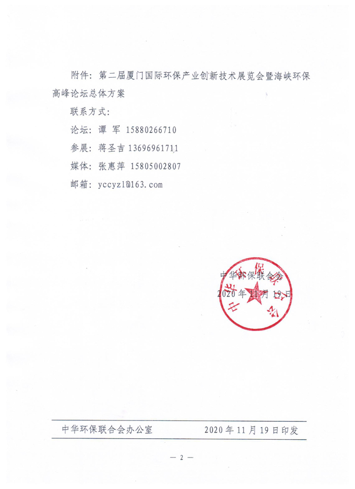 关于邀请参加第二届厦门国际环保产业技术展览会暨海峡环境科技高峰论坛的函