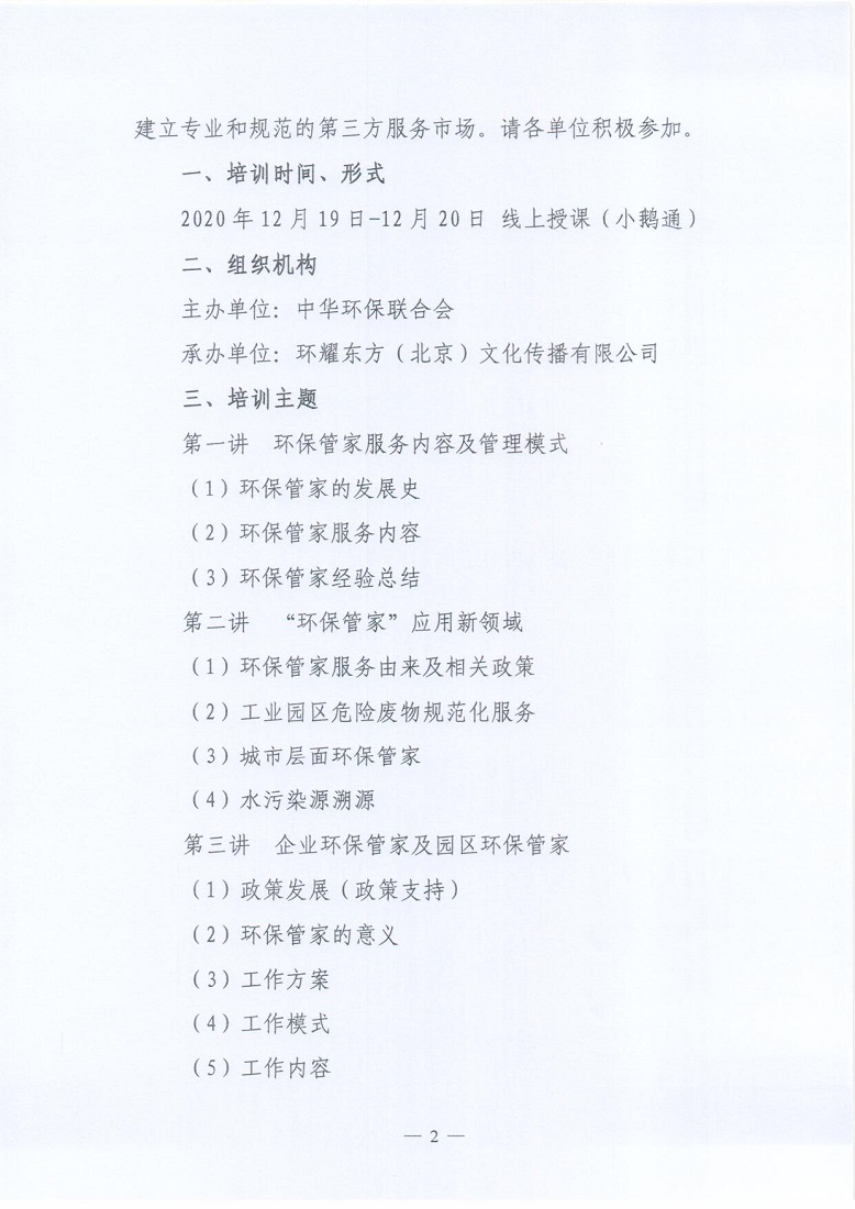 关于举办2020年第七期 “ 环保管家 ” 案例精讲及技术规范解读培训班的通知