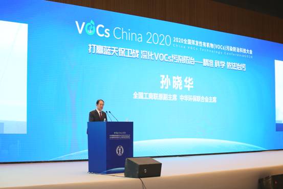 孙晓华主席在致辞中表示对于自然环境的优劣,人们最直观的是天空,最敏感的是空气,最担心的是水源。国务院于2018年7月发布的《打赢蓝天保卫战三年行动计划》,如今已到收官之年,对此役成效,世人有目共睹,老百姓感慨道:看来治理和不治理就是不一样。尽管如此,对大气污染防治形势还是不能太乐观,因为成效仍不稳固,长期性、根本性压力尚未完全缓解。在严重影响空气质量的污染物中,挥发性有机物(VOCs)随处存在、毒害很大,进一步加强VOCs污染防治,从一定意义上讲,是保卫蓝天、改良空气的关键所在。他提出三点具体建议:一是梳理问题;二是对症下药;三是要精准施策。不能千篇一律、整齐划一,必须因地制宜。中华环保联合会作为有着重大使命、独特作用的环保社团,深知我国的生态文明建设、生态环境保护还有很长很长的路要走,正确处理经济社会发展与生态环境保护的辨证关系还有许多重大课题需要破解,倡议政产学研社深度合作,向污染开战,向净化集结,向美好出发,向未来奔去。