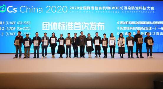 18日下午的全体会议期间还举行了团体标准发布仪式。本届大会平台首次发布了由中华环保联合会提出并归口的三项团体标准《挥发性有机物泄漏检测与修复项目审核评估指南》(T/ACEF 003-2020)、《挥发性有机物综合治理一厂一策编制技术指南》(T/ACEF 006-2020)、《汽车维修行业绿色喷涂共享中心技术规范》(T/ACEF 007-2020),面向全国首次发布实施。发布仪式主持人河北科技大学教授、中华环保联合会常务理事郭斌介绍了团标的编写历程,阐明了标准发布的社会意义,他表明三项团体标准以改善环境空气质量、完善挥发性有机物相关领域技术标准体系为目标,填补了标准空白,将对规范企业行为、引导行业健康发展发挥重要作用。