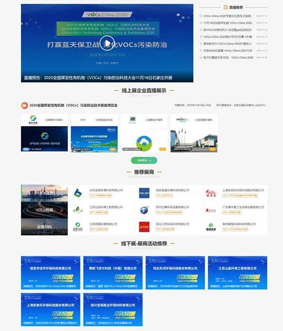 18-20日同期举办的2020全国挥发性有机物(VOCs)污染防治技术装备博览会是中华环保联合会联合数百家政产学研权威机构共同打造的VOCs防治领域的全产业链、全供应链和全价值链的全国性专业展会,本届展会无论从展览规模、参展单位还是专业观众的数量上均刷新往届纪录。为期三天的博览会总面积10,000余平方米,221家企事业单位展示了1000多件产品,线上观众数十万人次,吸引了来自各地的6700名(近万余人次)专业观众到场参观交流;其中包括山东、河北、河南、浙江、广东、广西、重庆、云南、陕西、甘肃、吉林等十多个省生态环境部门的代表团,还有石家庄、柳州、四平、兰州、阜阳、无锡、泰州、驻马店、台州等30多个市生态环境部门的代表团;以及SMC、艾默生、ATI、Laird、法国APIX、霍尼韦尔、波音、丰田汽车、三菱电机、中国商飞、中铝、中钞、中车、中粮、中信国安、格力电器、美的集团、齐鲁制药、华药、石药、兰州石化、长庆石化、佳通轮胎、中圣集团、天方药业、大连船舶重工、北控、盛虹集团、北排、循环化工园区、无锡市锡山新材料园等3000多家排放重点企业和园区等。